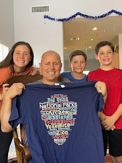 Ryah, Colton, and Daxton gave him a National Parks T-shirt--pretty awesome.