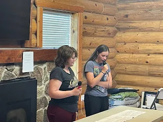 in a devotional that night, Sierra and Juliette (as the youngest grandkids) were called up to try to move this table. But then needed the help of their dads, Jonnie and Dehn. Being reminded that we all need the help of the Savior--
