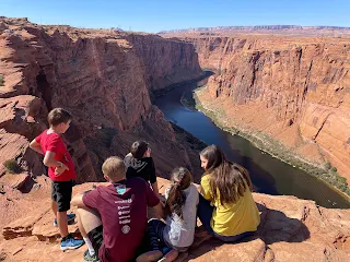 We then changed and headed over to Horseshoe Bend, with the attempt to get some family pictures. It was a "thrown-together" idea of mine....and my awesome, flexible family made it happen! I won't post all those pictures now, but here is a quick snapshot we took of all of us by the lookout--